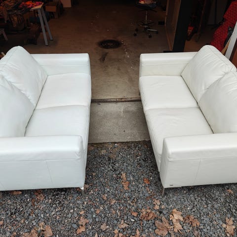 Myynnissä hyväkuntoinen, laadukas kolmen istuttava Natuzzin valkoinen nahkasohva, joka on ihana istua! Sohvan pinta on aitoa läpivärjättyä nahkaa, joka tuntuu miellyttävältä iholla. Ei reikiä tai kulumaa nahassa. Sohvan kromiset jalat luovat tyylikkyyttä ilmeeseen.