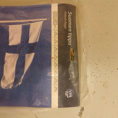 Plastiset Oy valmistama uusi Suomen lippu. Lippu iso, salkopituuteen 16 m.