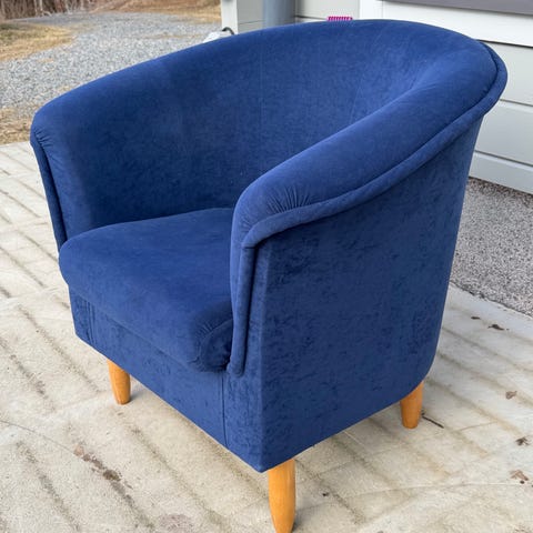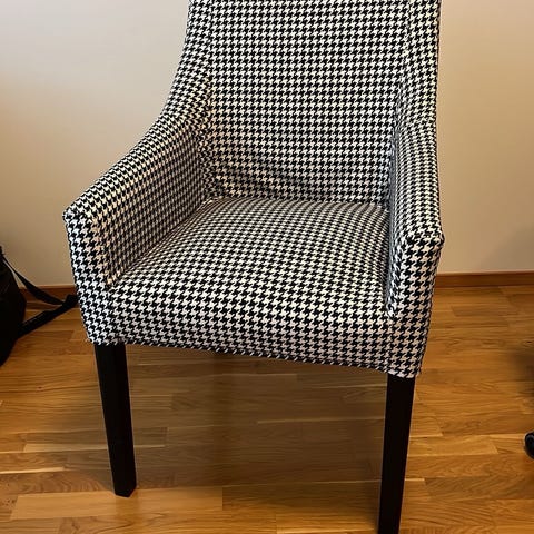 Ikea Poäng-tuoli pestävillä päällisillä. Kankaat ehjät ja siistit. Käsinojissa pientä kulumaa, yleisilme siisti.