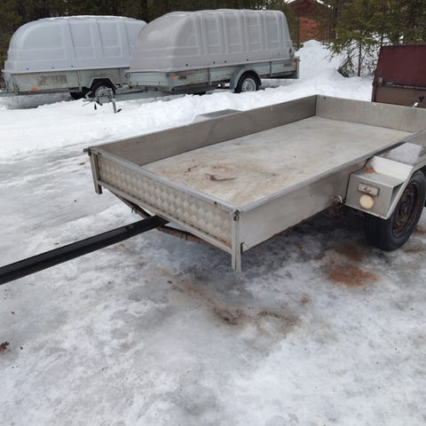 Peräkärry omavalmiste, 227x161. 40cm laidat. Pohjalevy entinen. Hyvät renkaat, siisti kunto!