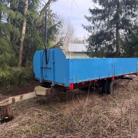 Peräkärry omavalmiste 1983. 227x161cm, laidat 40cm. Leveys 1950! Hyvät renkaat, sähköt pelaa, pohjavaneri vaihtokunnossa muuten hyvässä kunnossa!
