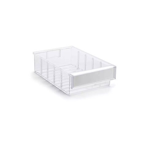 Kotimainen ja laadukas Trestonin hyllylaatikko pientavaravarastointiin. Hyllylaatikon aaltopohja tekee pientavaroiden poiminnasta vaivatonta ja estää samalla tavaroiden liukumisen laatikossa. Suojalevyllä varustettu etiketti tarjoaa runsaasti tilaa tuotetiedoille ja sen suojalevy takaa, että etiketti pysyy siistinä ja luettavana pitkään.