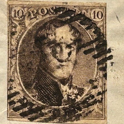 Belgia 1851 - Leopold I - 40c karmiinroosa vesileimalla kehyksessä kirjekuoren