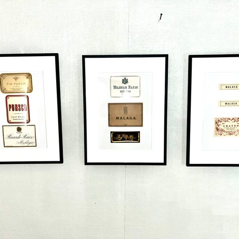 Tyylikäs minimalistinen taulu aidoilla vintage-juomaetiketeillä.