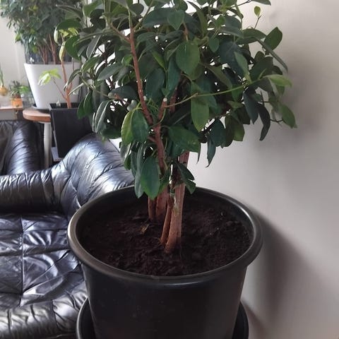 Viherkasvi valkoisessa Lechuza ruukussa ja kasvis valo .Kasvin korkeus on mitan perusteella noin 120 cm. Ruukun halkaisija on noin 25–30 cm. Sopii sisätiloihin huonekasviksi. Kasvi on istutettu multaan ja ruukussa on valumaton pohja sisäkäyttöön.