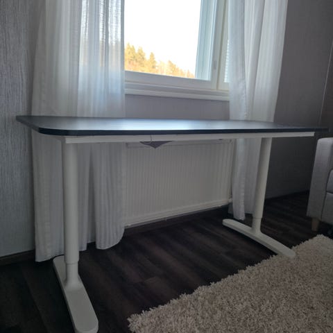 Myydään ikeasta ostettu siisti musta työpöytä ja tuoli.