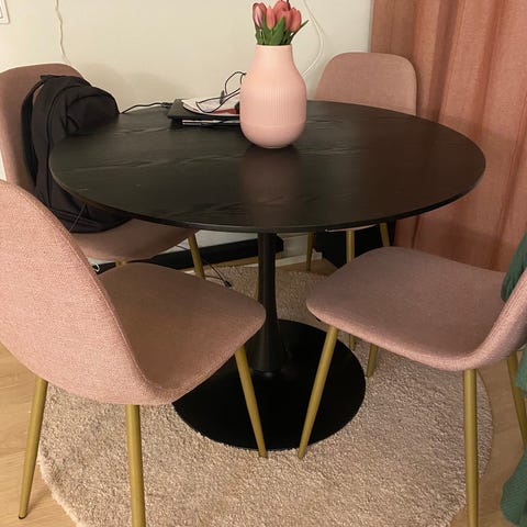 Pyöreä ruokapöytä valkoinen jalustajalka