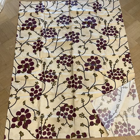 120x200cm vahakangasta tai kerniliina. Nurjalla puolella päädyssä on pientä kahvitahraa.