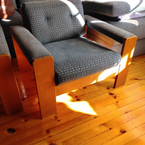 Seniorimallinen nojatuoli. Tyylikotkasta alkujaan ostettu n. 900,-/kpl. Korkea, pitkähköt käsinojat, tukeva. Perin vanhemmiltani 2kpl, mutta eivät sovikaan mökin ovesta. Mitat lisään myöhemmin. Piti jättää kiikun katokseen. Jalka saanut osumia imurista ja istuimessa pieni läikkä. Pikainen haku hyödyksi. Omiaan vaikka hoivakotiasunnon sisustukseen. Suojamatto ilmaiseksi mukaan. Toinen tuoleista naapurin varastossa. 60/kpl Rytäniemessä. Kuljetus Kotkan alueelle järjestyy + 15,-