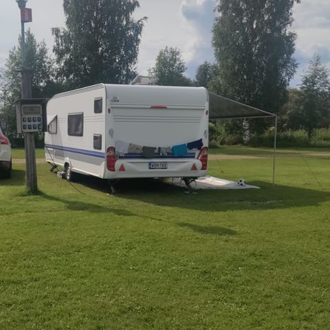 Hyvät varustelut; löytyy aurinkopaneeli sekä invertteri. Mm. kahvinkeitin ja mikro.