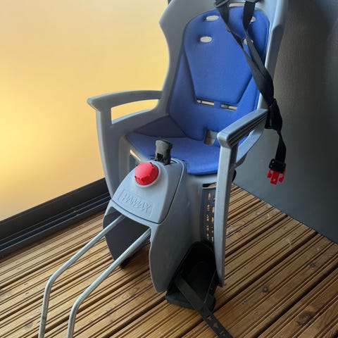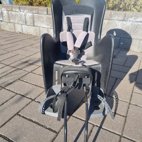 Myydään Hamax Smiley polkupyörän istuin + kiinnike. Käytetty ok kunto. Istuimessa säädettävät turvavaljaat, jalkatuet ja jalkaremmit.