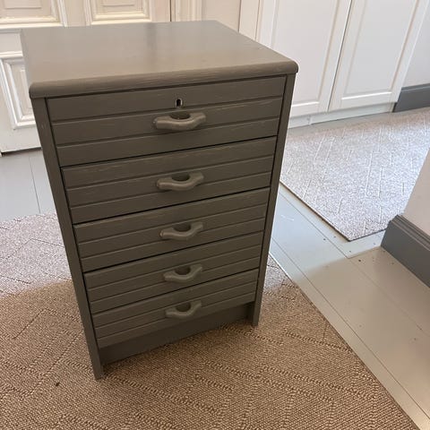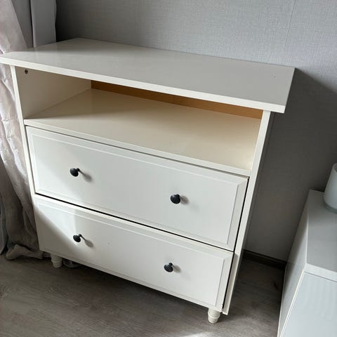 En tiedä onko ikean vai mikä lie. Siistissä kunnossa, mutta keskimmäinen laatikko putoaa kiskoilta toisesta reunasta.