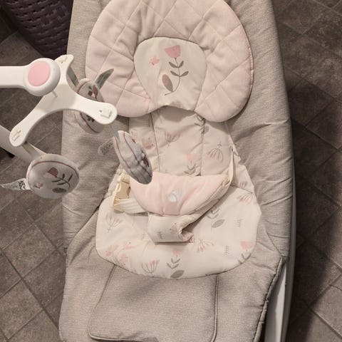 Joie Dreamer sitteri vauvalle. Sitterissä on sininen päällinen ja irrotettava raidallinen päällinen. Mahdollisuus laittaa tärinä, ääniä tai lauluja lasta rauhoittamaan. Valkoiseen osaan saa lelun roikkumaan, mutta sen voi myös ottaa pois. Helppo säätää korkeutta ja laittaa kasaan. Hyvä kunto!