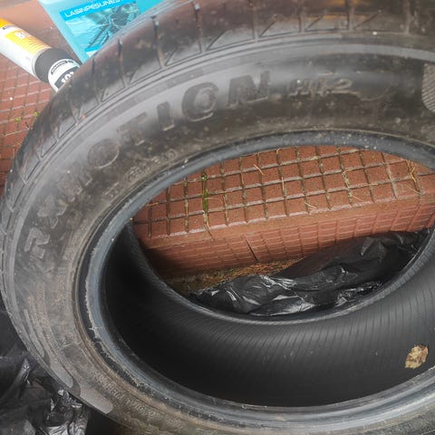 Pintaa 2 x 6-7mm ja 2 x 9mm. Ajelee vielä monta kesää ja ei tarvitse vaihtaa heti ensimmäisten liukkaiden saavuttua.
