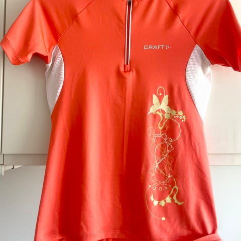 Lyhythihainen, hengittävä ja nopeasti kuivuva pyöräilypaita, jossa täyspitkä vetoketju edessä.
