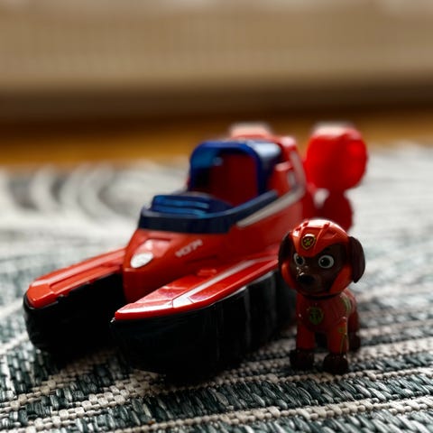 Paw Patrol -aiheinen lelusetti, johon kuuluu useita muovisia ajoneuvoja ja koirafiguureja. Setissä on sinisiä ja oransseja ajoneuvoja sekä eri hahmoja esittäviä koiria varusteineen. Lelut sopivat lasten leikkeihin ja roolileikkeihin Paw Patrol -teeman parissa.