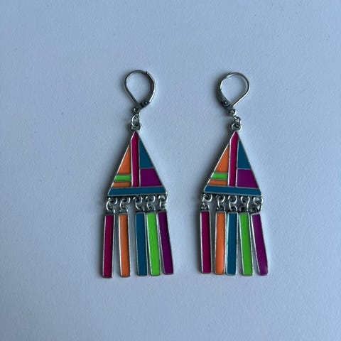Kuvan mukaiset keltaiset korvakorut, pisin sivu noin 5,5 cm.