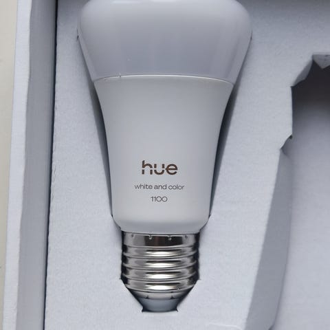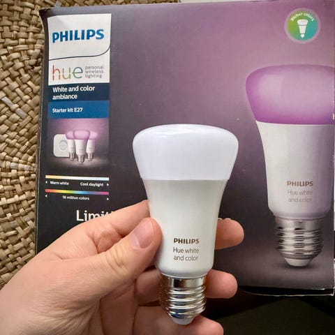 - Kaikki värit antava (White and Color Ambiance) 800 lumenin Philips Hue E27 polttimo ja sen pidike.