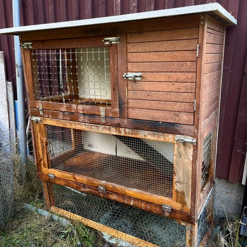 Puinen ulkokani- ja jyrsijähäkki vihreä. Häkissä on maalattu puurunko, katettu katto ja verkolla varustettu etuseinä. Toisella sivulla on valkoreunainen ovi lukitussalvoilla sekä avattava kattoluukku helpottamaan siivousta ja eläimen käsittelyä. Sopii esimerkiksi kanille tai kanoille. Häkki on nostettu jaloille irti maasta, mikä helpottaa puhtaanapitoa ja suojaa kosteudelta.