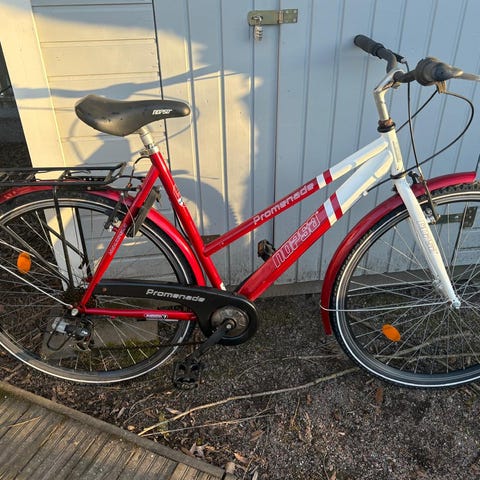 Kolme vaihdetta ja etukori sekä valo. Pyörä kaipaa huoltoa, mahdollisesti toinen rengas tai sisäkumi pitää vaihtaa. Maalipinta ja satula jo vähän kärsineitä... Saa tulla katsomaan ja ostopäätöksen tehdä vasta paikanpäällä.