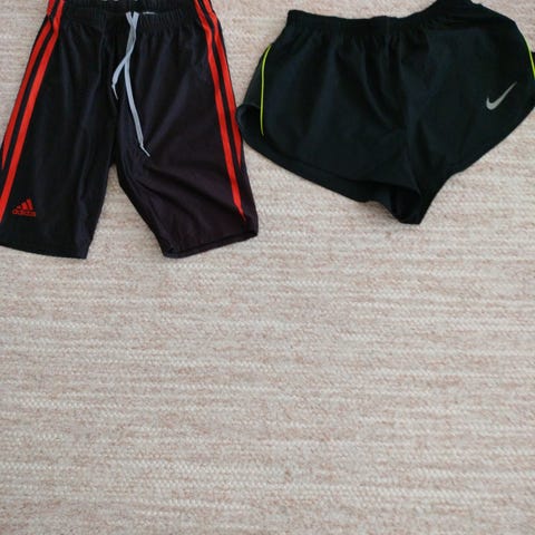 Kahdet urheilu-/juoksushortsit miesten koko S. Merkit Nike ja SOC. 3€/kpl tai yht 5€.