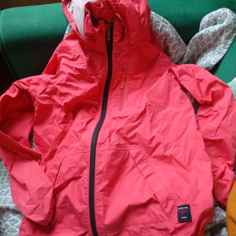 Po.P:n vk-takki koossa 146cm. Hihansuissa ja helmassa tummentumaa, heijastimissa naarmua. Ei reikiä tai viiltoja, kaikki saumat ehjiä. Maltillisemman punainen kuin kuvissa. Pesty kerran hajusteettomasti. Nouto tai postitus S-pakettina (en käytä ToriDiiliä)