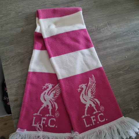 Liverpool kaulahuivi. Reunoissa repsotusta (kts. kuvat)