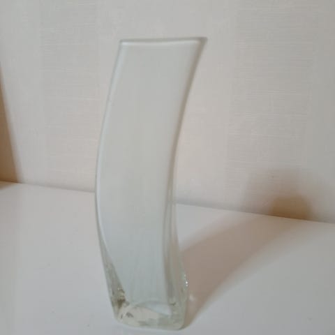 Lasinen maljakko, joka kapenee hieman ylöspäin ja levenee taas. Korkeus 20 cm. Suuaukon halkaisija 8,5cm.