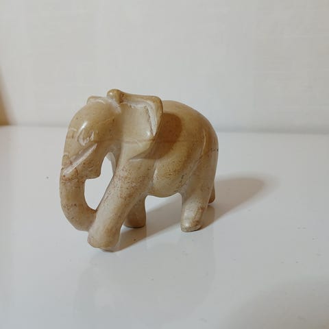 Kevyttä materiaalia oleva norsu, muovia? Korkeus 9cm, pituus 11cm.