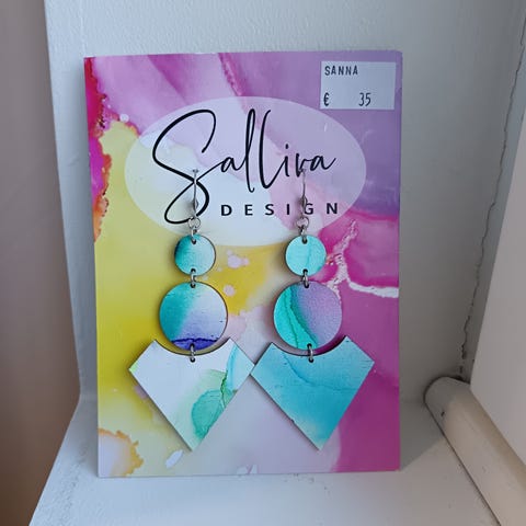 Väritys molemmin puolin erilainen maalattu sinisen ja turkoosin sävyinen kuviointi.