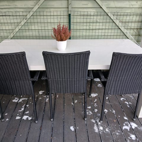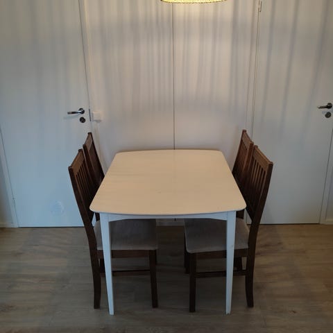 Ruokapöytä 100cmx200cm, käytönjälkiä, painava, muutama tuoli tarvittaessa 15e/kpl