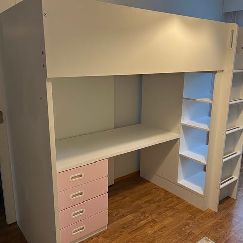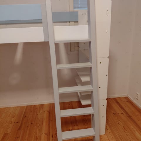 OK-kuntoinen IKEA:n VITVAL parvisänky työpöydällä. Pöytälevyn voi asentaa sängyn oikealle tai vasemmalle puolelle. Tikkaat voi kiinnittää joko sängyn oikealle tai vasemmalle puolelle. Huonekorkeuden oltava vähintään 240 cm ja mitat löytyvät kuvista. Patja ei kuulu kauppaan. Ikean sivulla hinta 399€.