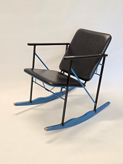 Eliel Saarisen suunnitteleman Blue Suite -sarjan pöytä "Blue Table". Valmistaja Adelta. Pöydässä metallilaatta numeroinnilla 328. Pöydässä on vähäistä käytön jälkeä.