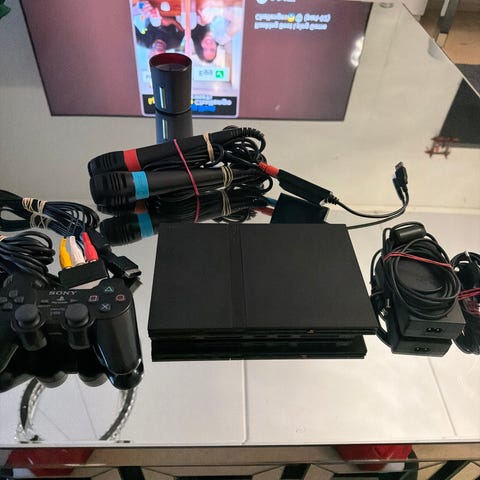 Myydään Nostalgista vintage-elektroniikkaa 🤩 PS2 pelikonsoli ja 8MB muistikortti sekä kaksi ohjainta.