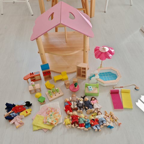 Nukkekoti + kalusteet ym.