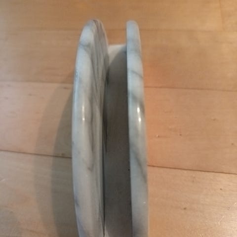 Marmorikaulin, jossa on musta kivirulla ja vaalea, irrallinen puukahva. Rulla on irrotettavissa kahvasta, mikä helpottaa puhdistusta ja säilytystä. Varren kanssa 50cm leveä.Kaulin on hyvässä kunnossa ilman näkyviä vaurioita tai kulumia.