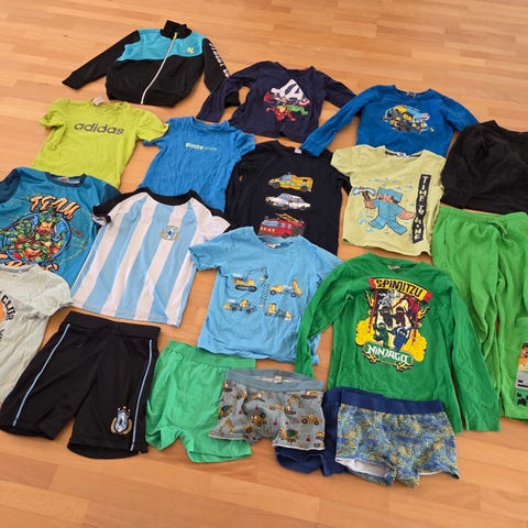 Myydään poikien vaatepaketti koossa 122-130 (9kpl). Sisältää kevyen pipon, parit housut, t-paidan, pitkähihaisen, paidan ja 2 hupparia. Osa vaatteista on enemmän käytettyjä ja osa on vähemmän. Hinta 20€, nouto Korkalovaara.