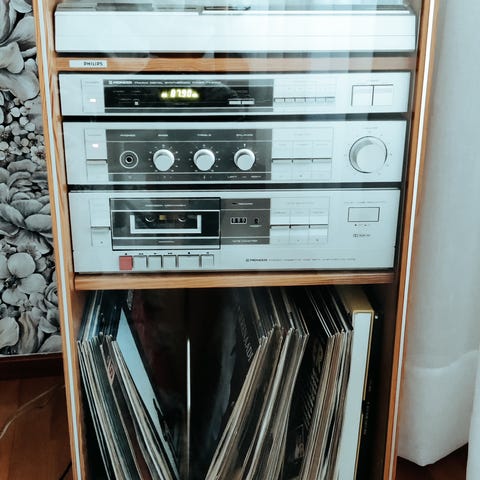 - LP soittimet taso. Saa käännettyä kulmaan tai levitettyä suoraksi. Muistaakseni iskun merkkitarran tässä olin näkevinäni.