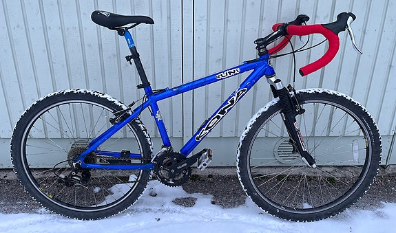 Juuri läpikäyty yleispyörä sorateille, retkeilyyn ja työmatkoille. Teräsrunkoinen eli pehmeä ajaa. Kuvassa satula 171 lyhytjalkaiselle kuskille, säätövaraa on etenkin alaspäin hyvin, voin auttaa ajoasennon hakemisessa.