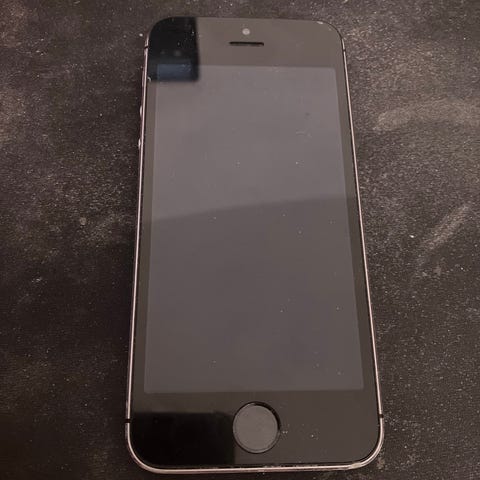 Puhelimessa on lasinen etu- ja takakuori sekä metallinen kehys. Väri on musta. Laitteessa on fyysinen kotipainike etupaneelissa ja takana kamera salamalla. Kuvista näkyy, että takakuoressa ja näytön alakulmassa on halkeamia. Puhelimen sisäosat ja akku ovat näkyvissä yhdessä kuvassa, mikä viittaa siihen, että laitetta on avattu tai huollettu. Tarkemmat tekniset tiedot, kuten tallennustila ja tarkka malliversio, eivät käy ilmi.