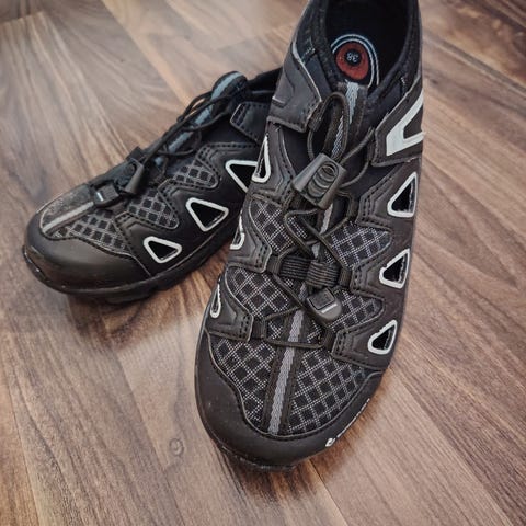 Tässä myytävänä erittäin hyväkuntoiset ja laadukkaat Shimanon pyöräilykengät naiselle.