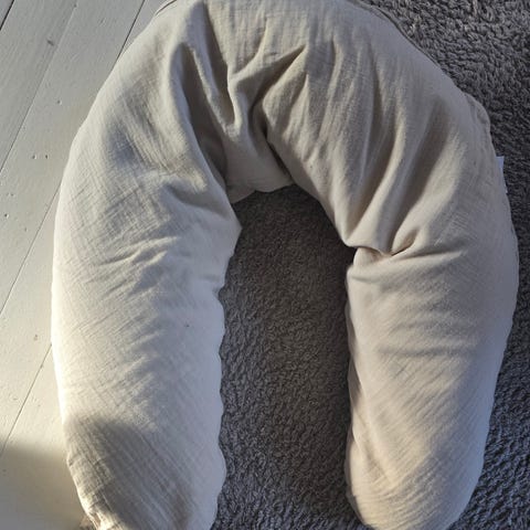 Uutena ostettu ja lähinnä raskausaikana käytetty nukkuessa. Väri tetra green, harsomainen konepestävä päällinen. Jättikokoinen, pituus 190cm. Erittäin pehmeä ja tukeva. Sopii myös imetykseen ja vauvan tueksi. Siisti, hyväkuntoinen tukityyny seuraavalle käyttäjälle, ei ole ollut tarvetta pestä kertaakaan.