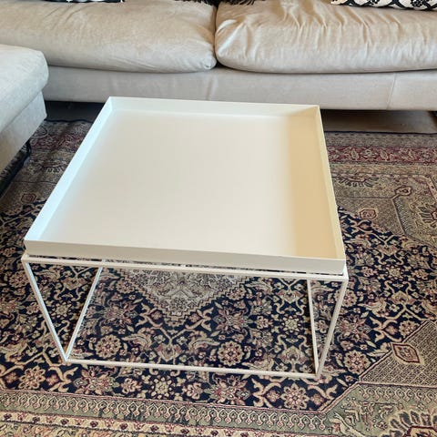 Tray Table Coffee sohvapöytä HAYltä on joustava valinta kotiin. Se toimii sekä sohvapöytänä että sivupöytänä. Pulverimaalatusta teräksestä valmistettu irrotettava tarjotin on helposti käsiteltävissä, mikä helpottaa esineiden siirtämistä. Pientä kulumaa reunassa, mutta ei häiritse tai suuresti näkyvää.