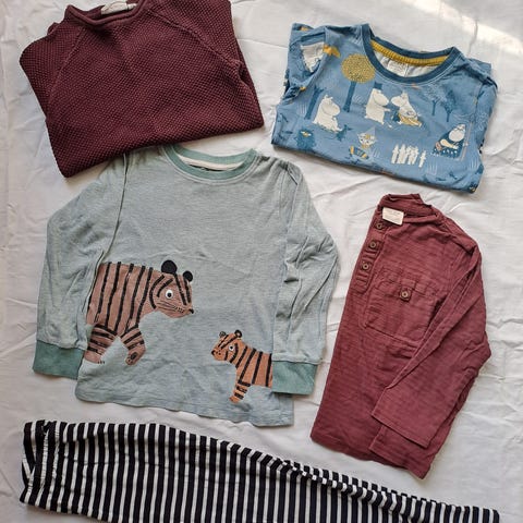 Kokomerkinnät 98-110/116. Siistejä käytettyjä, osaa pidetty vaan kerran tai pari. Muumi paita uusi, vain käyttöönottopesty, sen kokomerkintä 120 mutta vastaa paremmin 110/116.. Kahdesta löysin moitteet, kts. kuvat.