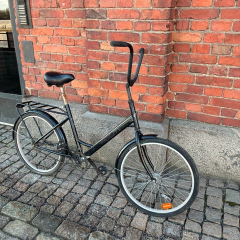 Tukeva, vanhemman sukupolven yksipyöräinen. Rengaskoko 24" ja "säkäkorkeus" 100 cm (säädettävissä). Kulumaa on (kts. kuvat), mutta ajaa edelleen asiansa (ajajansa).