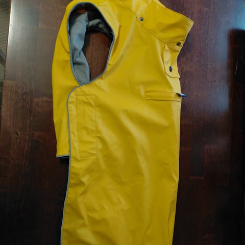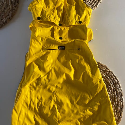 Hyväkuntoinen käytössä ollut Rukan koiran sadetakki. Ei omaan silmään vikoja. Muutaman kerran pesty ohjelapun mukaan.