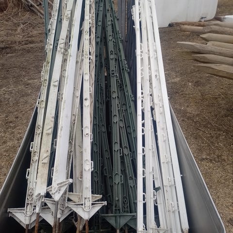Pätkittyjä on niin paljon että se kattoi isonkin laitumen. 3 muovia per tolppa pystyy tekeen. Väliin eriste.