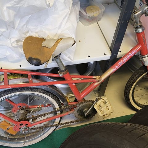 Jos joku taitava haluaisi nää hakea ja korjata lapsilleen käyttöön, saa tulla hakemaan! Voi myös hakea yhden pyörän vain.