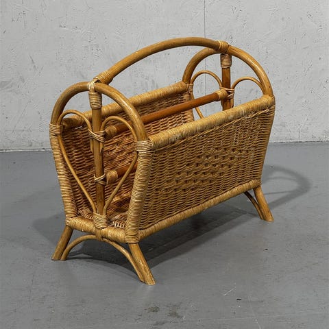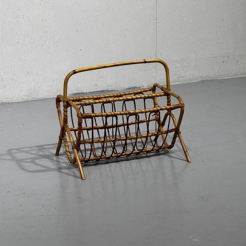 Myydään kaunis ja hyväkuntoinen vintage rottinki lehtikori /-teline. Käytönjälkeä vuosien käytöstä löytyy (kts. kuvat), mutta muutoin ehjä ja tukeva rakenteinen!
