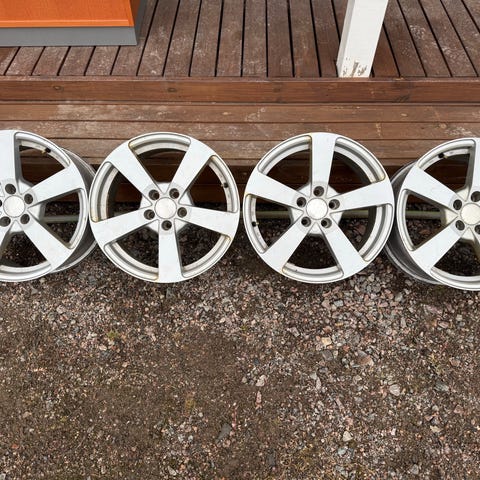 Myydään Alessio-vanteet R17. Vanteet on joskus maalattu valkoisiksi. Olleet käytössä Opel Astra F:ssä ja Toyota Corolla E12:ssa. Renkaat ovat kuluneet loppuun.